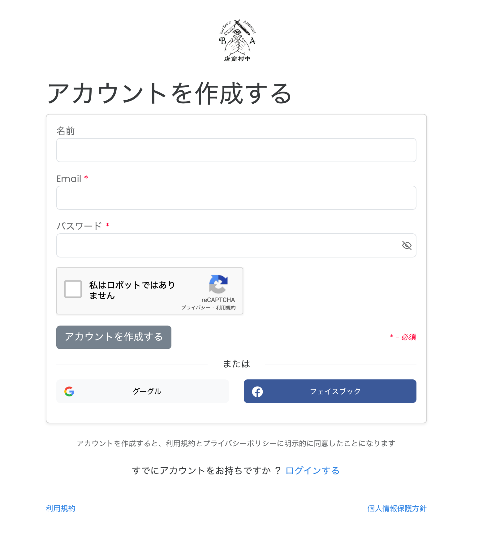 - 名前・メールアドレス・パスワードなど、基本情報を入力して送信。